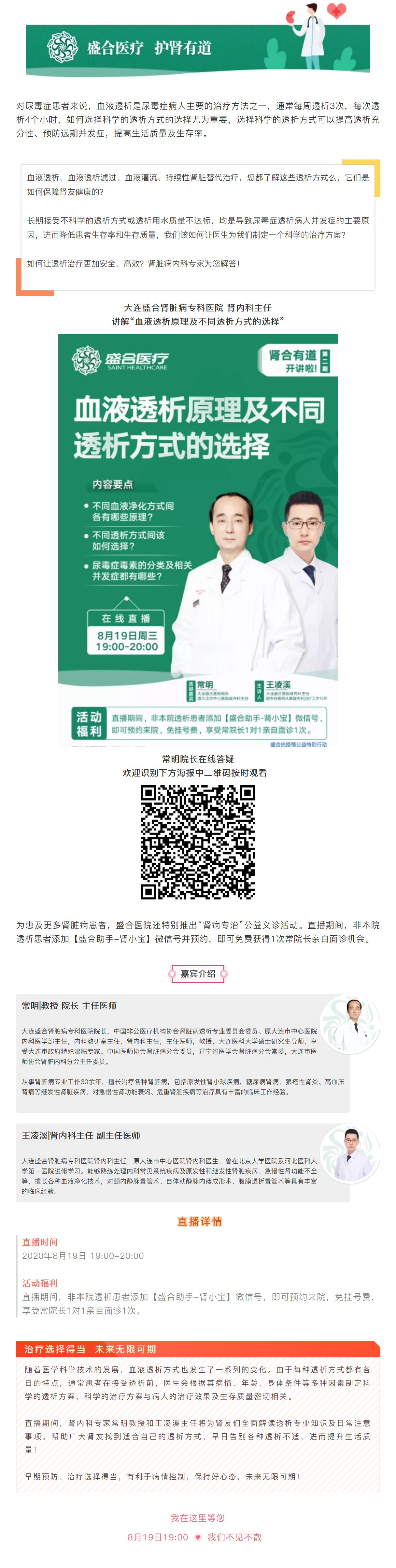 【8月19日直播預(yù)告】血液透析原理及不同透析方式的選擇