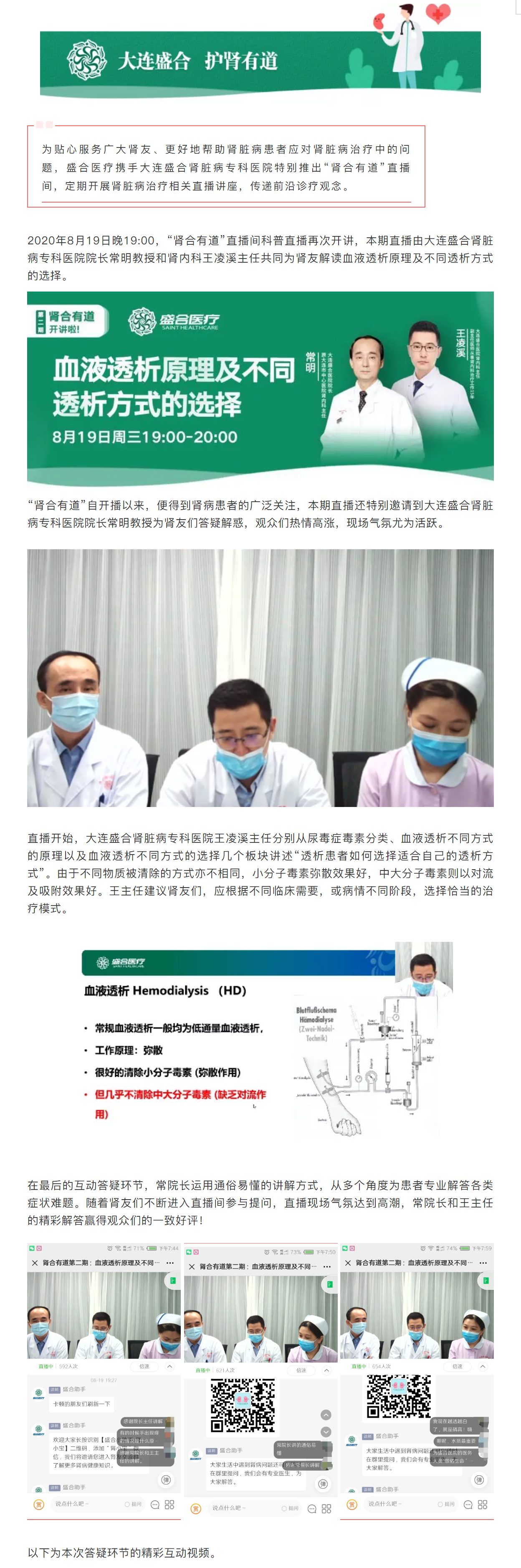 “腎合有道”精彩回放|血液透析原理及不同透析方式的選擇